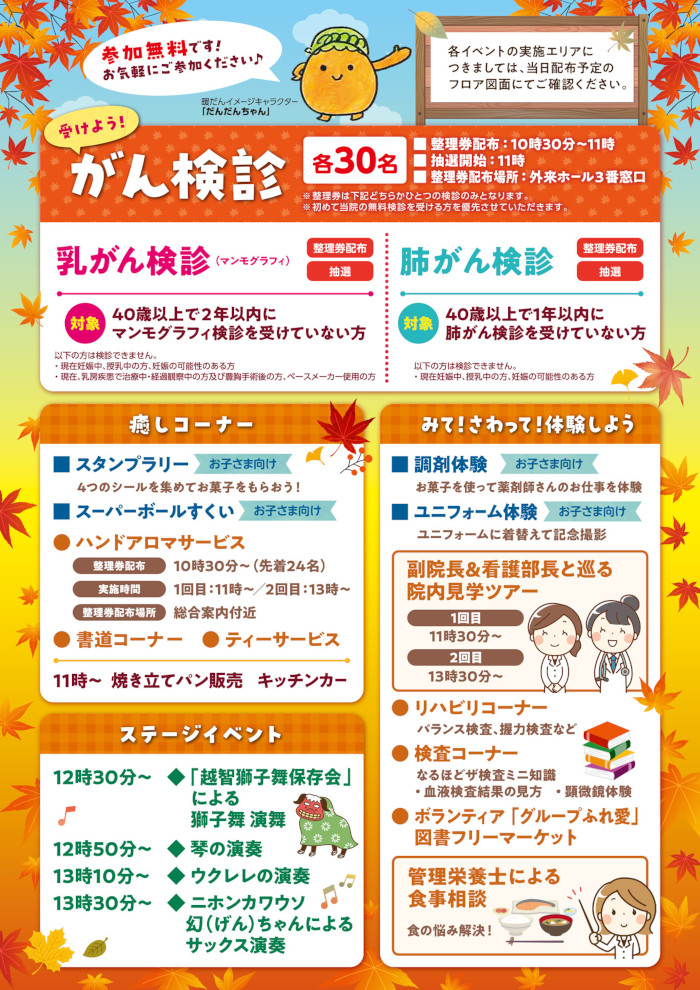 - 無料がん検診(肺がん・乳がん)※抽選で各30名