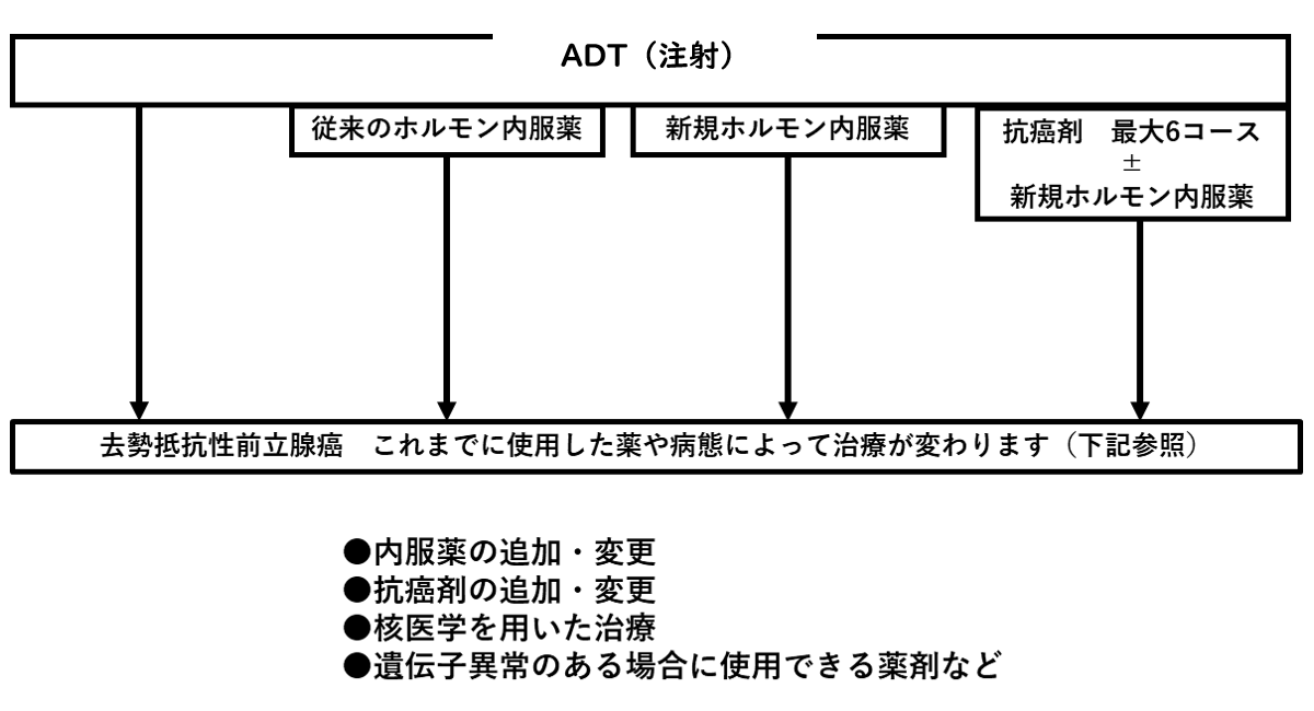 前立腺癌に対するホルモン治療の流れを下の図に示します。